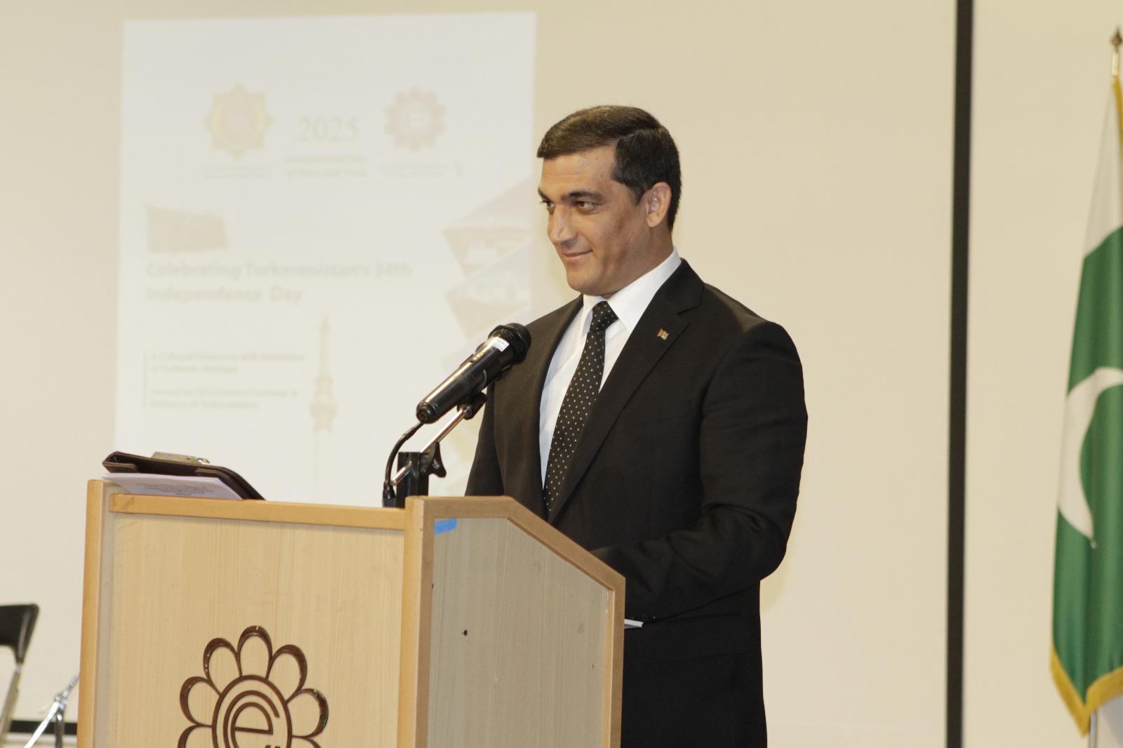 В своем вступительном слове посол Туркменистана в Иране Его Превосходительство Ельяс Гайыпов приветствовал участников и отметил достижения своей страны в политической, экономической и культурной сферах. Он подчеркнул проводимую Туркменистаном политику нейтралитета, мира и доверия, назвав недавнее принятие Конституционного закона «Об основах политики мира и доверия» важной вехой. Посол также подчеркнул ценность туркмено-иранских отношений в области политики, экономики, энергетики и культуры, а также высоко оценил важную роль Института культуры ЭКО в продвижении туркменского искусства и наследия на международном уровне. После своего выступления Генеральный секретарь Организации экономического сотрудничества (ОЭС) и ряд официальных лиц и представителей культуры Ирана выступили с речами, подчеркнув важность укрепления регионального сотрудничества в рамках ОЭС.