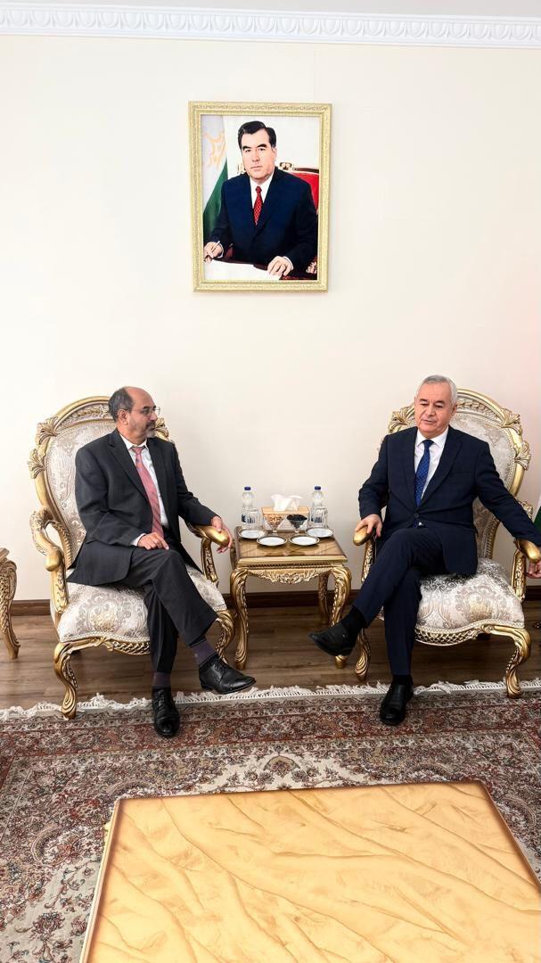 Ambassador Mohammad Hassan, President of the ECO Cultural Institute, met with H.E. Dr. Nizomiddin Zohidi, Ambassador Extraordinary and Plenipotentiary of the Republic of Tajikistan to the Islamic Republic of Iran, on Tuesday, 16 December 2025, at the Embassy of the Republic of Tajikistan in Tehran.