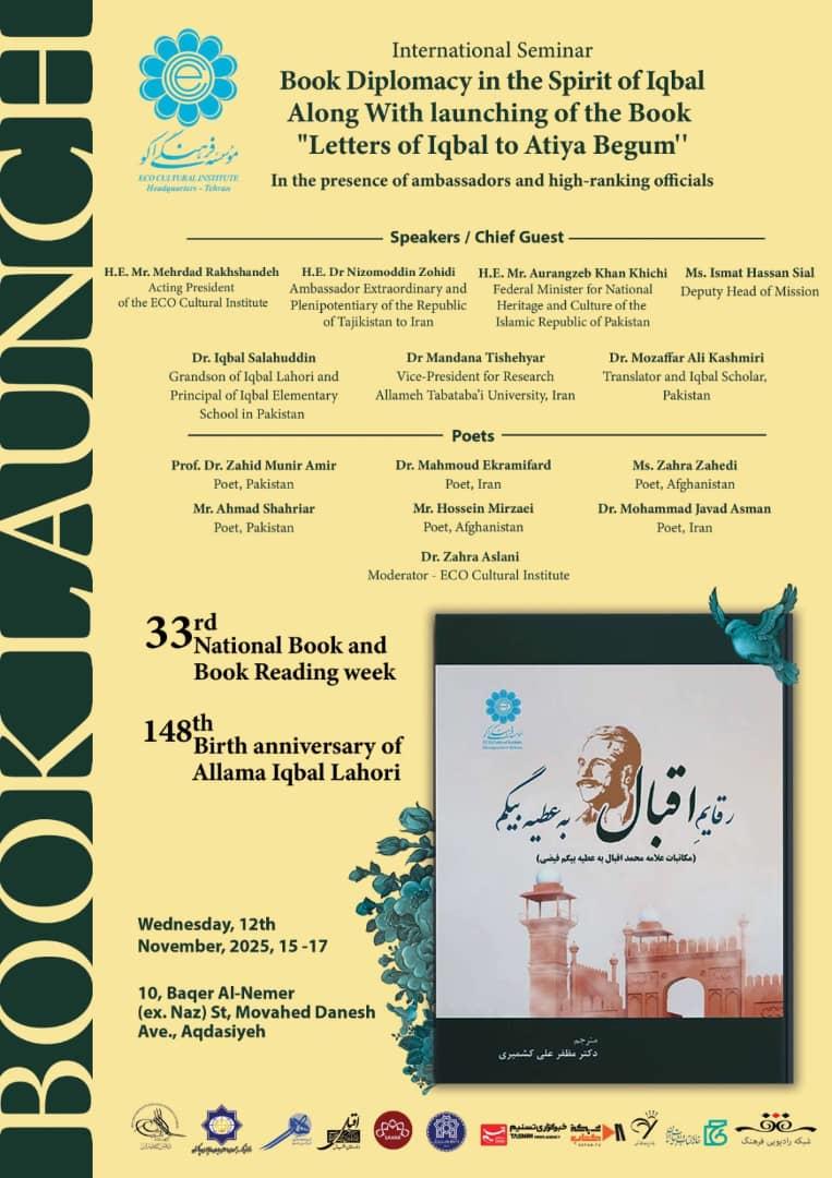مؤسسه فرهنگی اکو (ECI) در راستای تقویت پیوندهای فرهنگی منطقهای، در نشست «دیپلماسی کتاب با طنین اقبال»، از کتاب «رقایم اقبال به عطیه بیگم» رونمایی خواهد کرد.