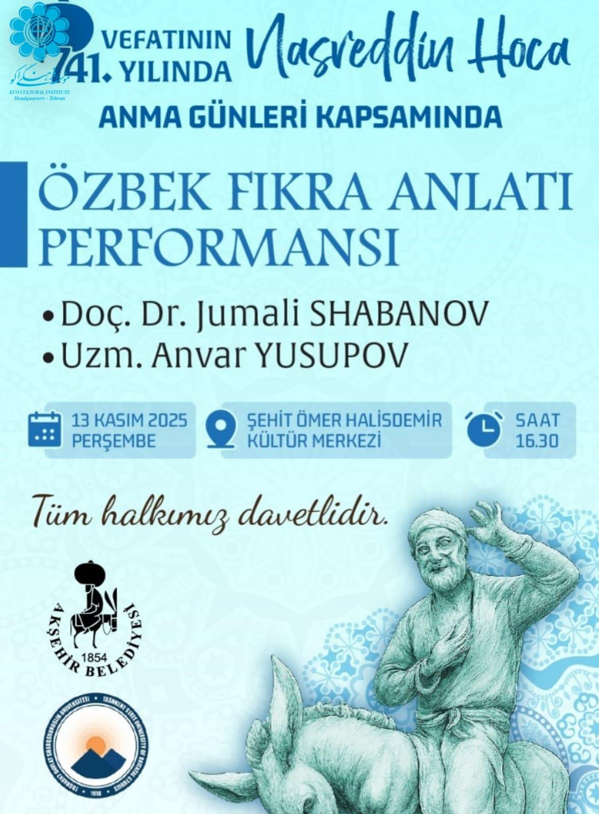 «خواجه نصیرالدین» در سالگرد هفتصد و چهل و یکمین سال درگذشتش، در تاریخ ۱۳ نوامبر ۲۰۲۵ در آقشهر با احترام و محبت گرامی داشته میشود. او به عنوان یکی از برجستهترین نمادهای میراث فولکلوریک مشترک در حوزه فرهنگی سازمان همکاری اقتصادی (ECO)، همچنان آمیزهای از خرد، طنز و انسانیت را که در طول نسلها طنینانداز شده است، زنده نگه میدارد.