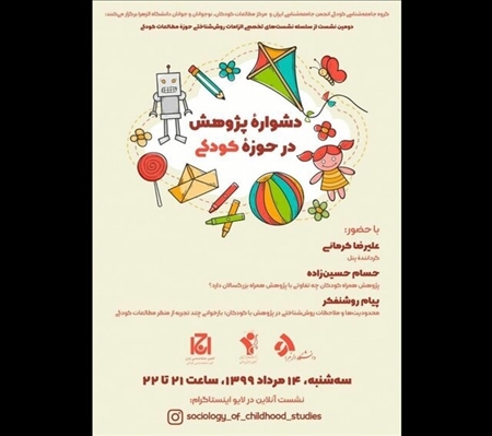 به گزارش پایگاه اطلاع رسانی موسسه فرهنگی اکو به نقل از ایسنا، این نشست به همت گروه جامعهشناسی کودکی انجمن جامعهشناسی ایران روز سهشنبه (۱۴ مرداد) از ساعت ۲۱ تا ۲۲ با حضور حسام حسینزاده و پیام روشنفکر در فضای مجازی برگزار میشود.