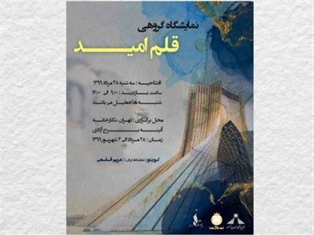 نمایشگاه گروهی "قلم امید" به نمایشگاهگردانی مریم قاسمی 28 مرداد در تالار آیینه برج آزادی افتتاح میشود.