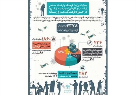 با حمایت وزارت فرهنگ و ارشاد اسلامی تا پایان شهریور امسال بیش از دو هزار و 300 میلیارد ریال تسهیلات به مشاغل آسیب دیده از کرونا در حوزه فرهنگ، هنر و رسانه پرداخت شد.