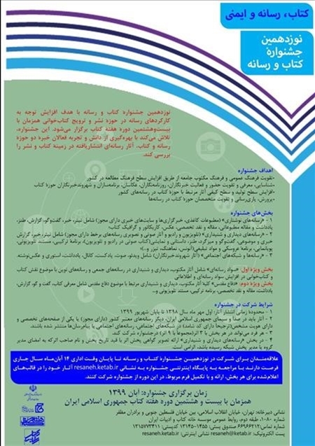 فراخوان ارسال آثار برای شرکت در نوزدهمین دوره جشنواره کتاب و رسانه از سوی دبیرخانه این جایزه منتشر شد.