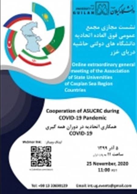 نشست مجازی مجمع عمومی فوق العاده اتحادیه دانشگاههای دولتی حاشیه دریای خزر با هدف تقویت همکاری اعضای اتحادیه در دوران همه گیری کووید – ۱۹ در روزچهارشنبه ۵ آذر ۱۳۹۹ (۲۵ نوامبر ۲۰۲۰) برگزار میشود.در این اجلاس رؤسا و معاونان بیش از ۳۰ عضو اتحادیه از کشورهای فدراسیون روسیه، قزاقستان، جمهوری آذربایجان و ایران حضور خواهند یافت.
