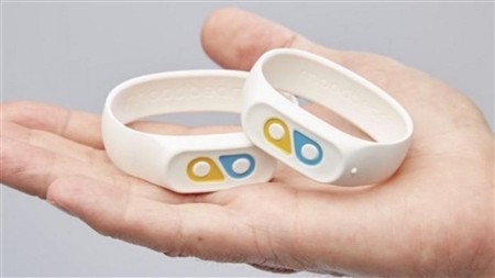 دستبند Moodbeam که به برنامه تلفن همراه و کامپیوتر متصل میشود، دارای دو دکمه به رنگهای زرد و آبی میباشد.