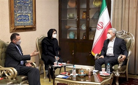 در این دیدار همچنین میثم کیانیزاده نماینده وزارت امورخارجه و امیرمهدی طاهریفر مدیرعامل شرکت حامیان حضور داشتند.