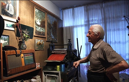 عده ای از افراد ارتش امریکا نیز برای چاپ چند مجله و اوراق دیگر در چاپخانه بانک ملی کار می کردند. در میان آنان کسانی بودند که اجباراً لباس نظامی برتن داشتند، ولی افرادی بافرهنگ و دانش بودند که در میان آنان نویسنده، شاعر و هنرمند نیز دیده می شد. یکی از این افراد دانشمند سالخورده ای به نام پروفسور کاسکیال کوفسکی بود که لباس معمولی برتن و چهره ای مسیحایی داشت. او انسانی بی تکبر و متواضع بود و من از او خیلی خوشم می آمد. تصمیم گرفتم هر آینه اجازه دهد، از صورت او نقاشی کنم.